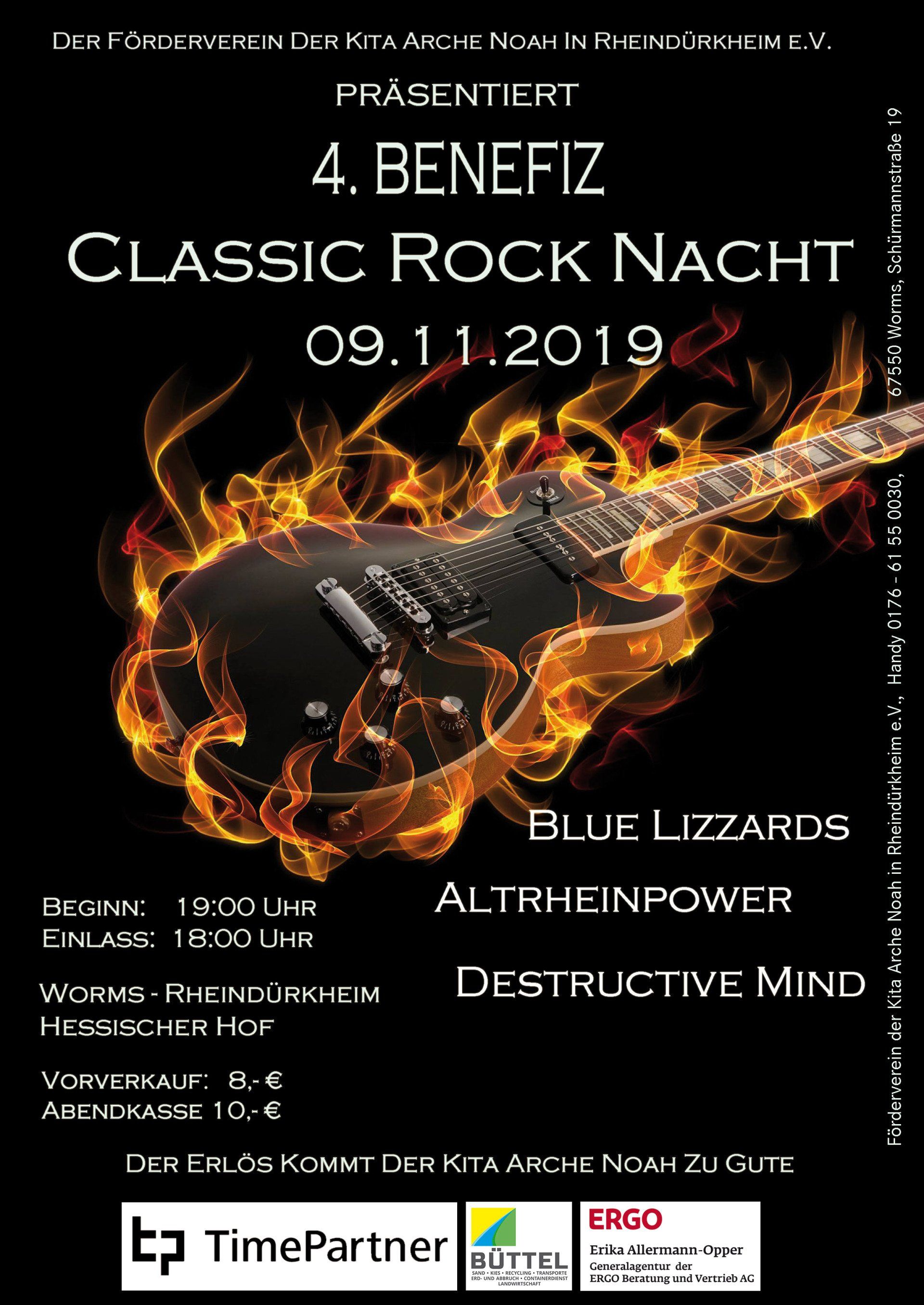Zum vierten Mal veranstaltet der Förderverein der Kita Arche Noah in Rheindürkheim e.V. seine Benefiz Classic Rock Nacht!